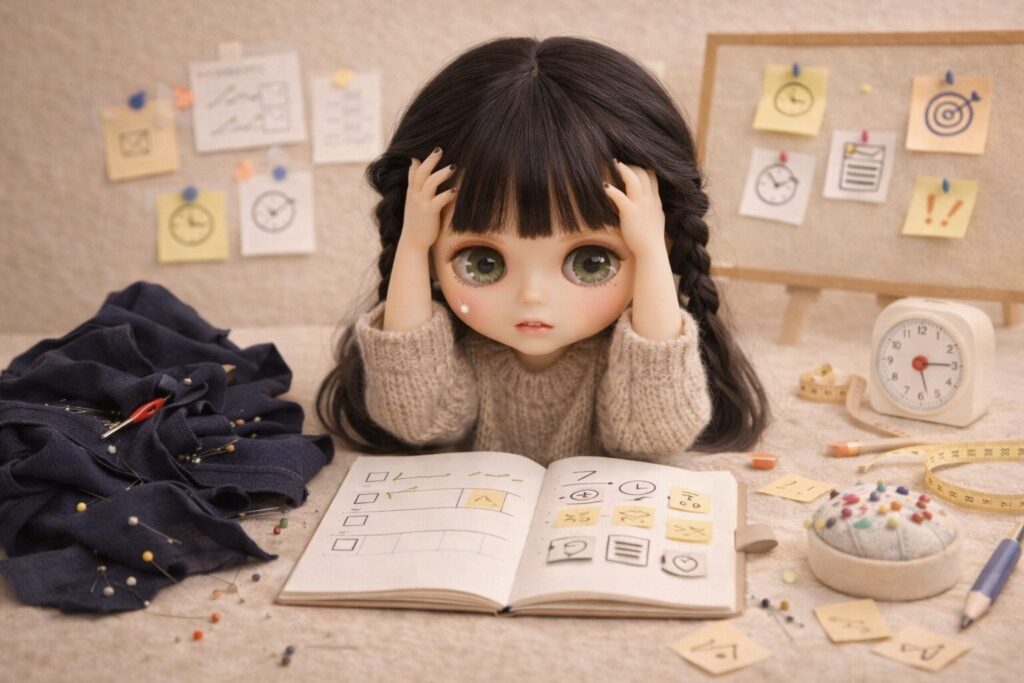 大きな布作業やブライスアウトフィットづくりにおいて、途中で挫折してしまう原因は「計画不足」と「一気に詰め込みすぎる目標設定」にあります。ここでは、無理なく続けられる作業計画の立て方を紹介します。まずは全体像を把握し、次に日々の具体的な進め方を落とし込み、最後にモチベーションの維持法を組み合わせると、完成までの道のりが格段に安定します。