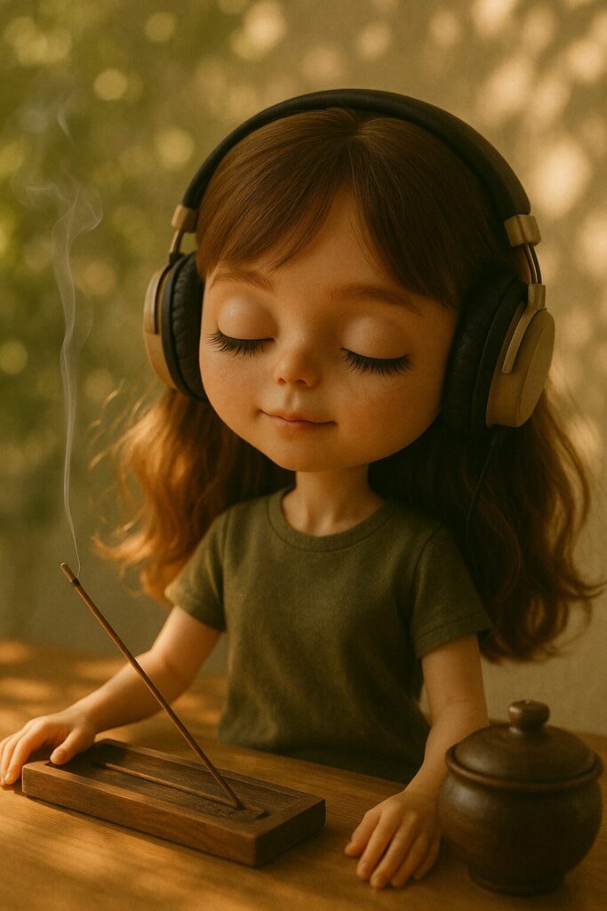 ・自然音(小川のせせらぎ、風の音、雨音)を低〜中音量で流すと、心が落ち着きます。